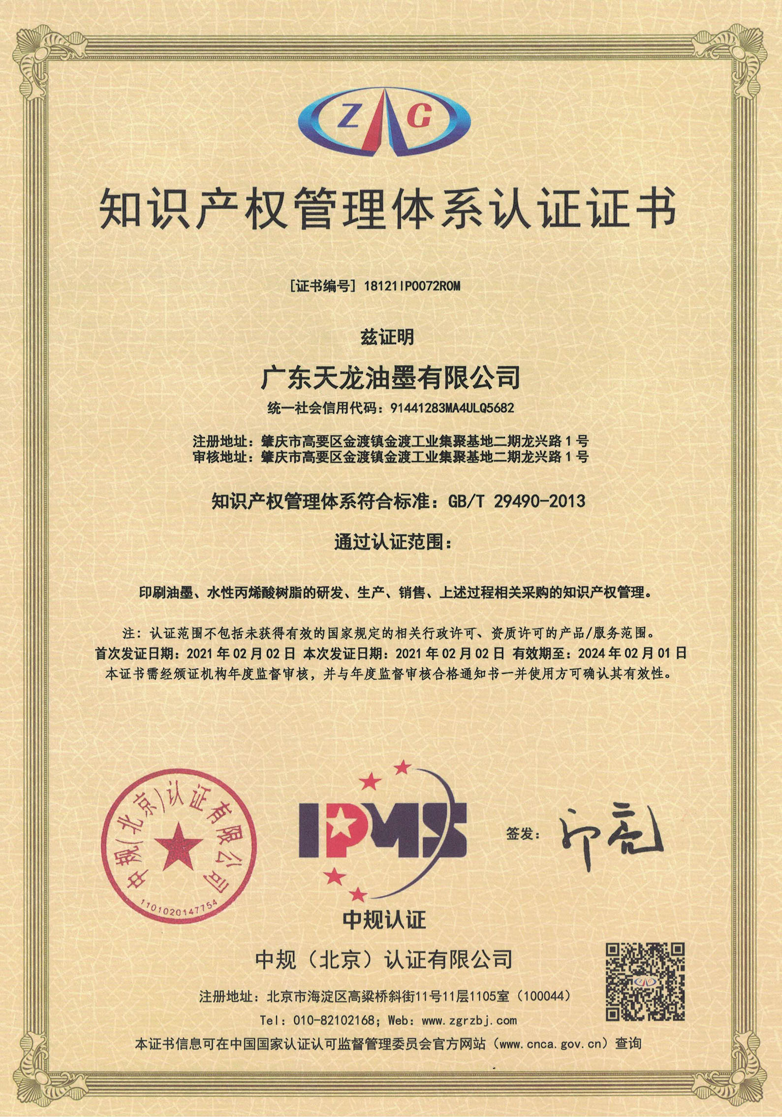 知識產(chǎn)權(quán)管理體系認(rèn)證證書