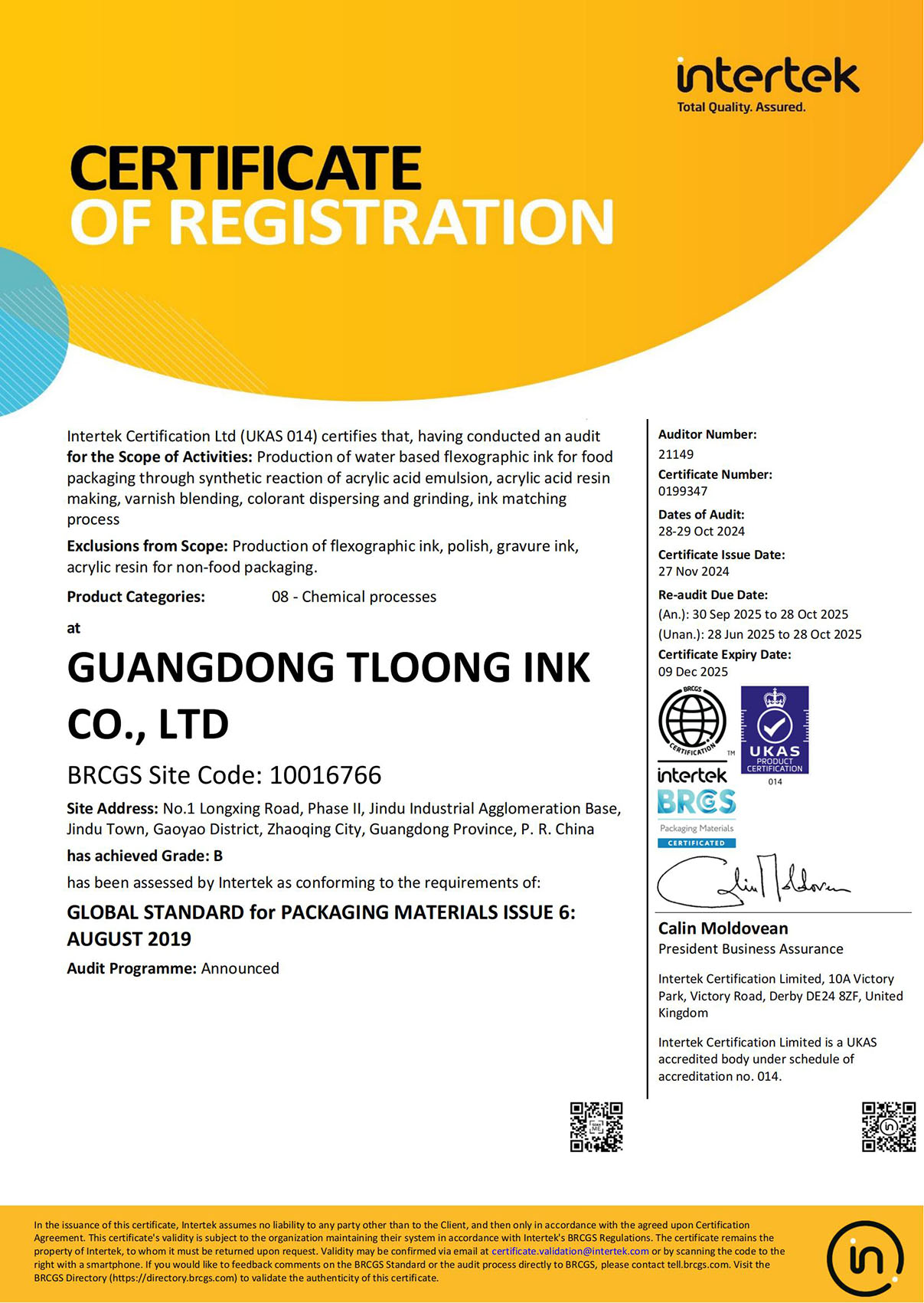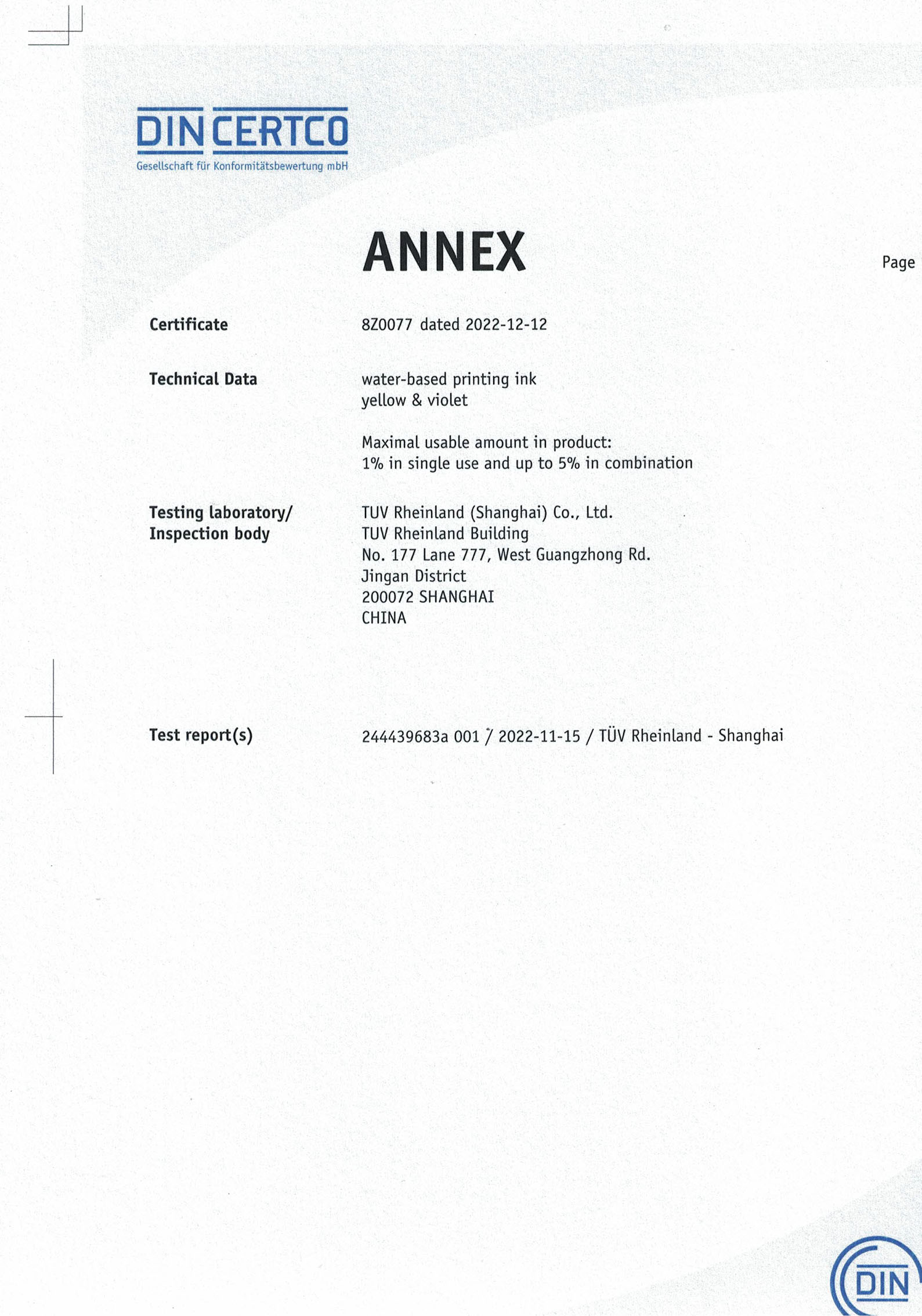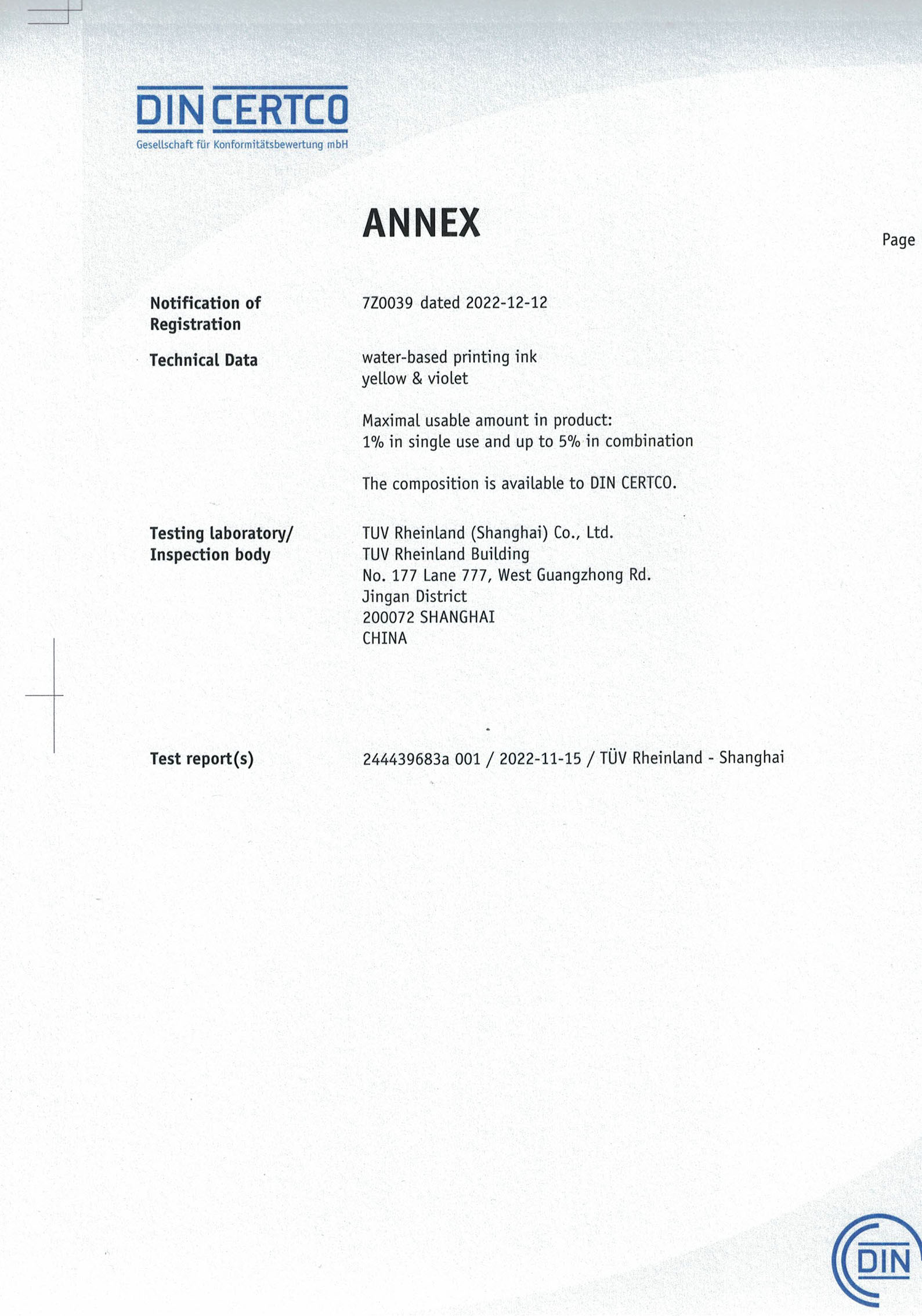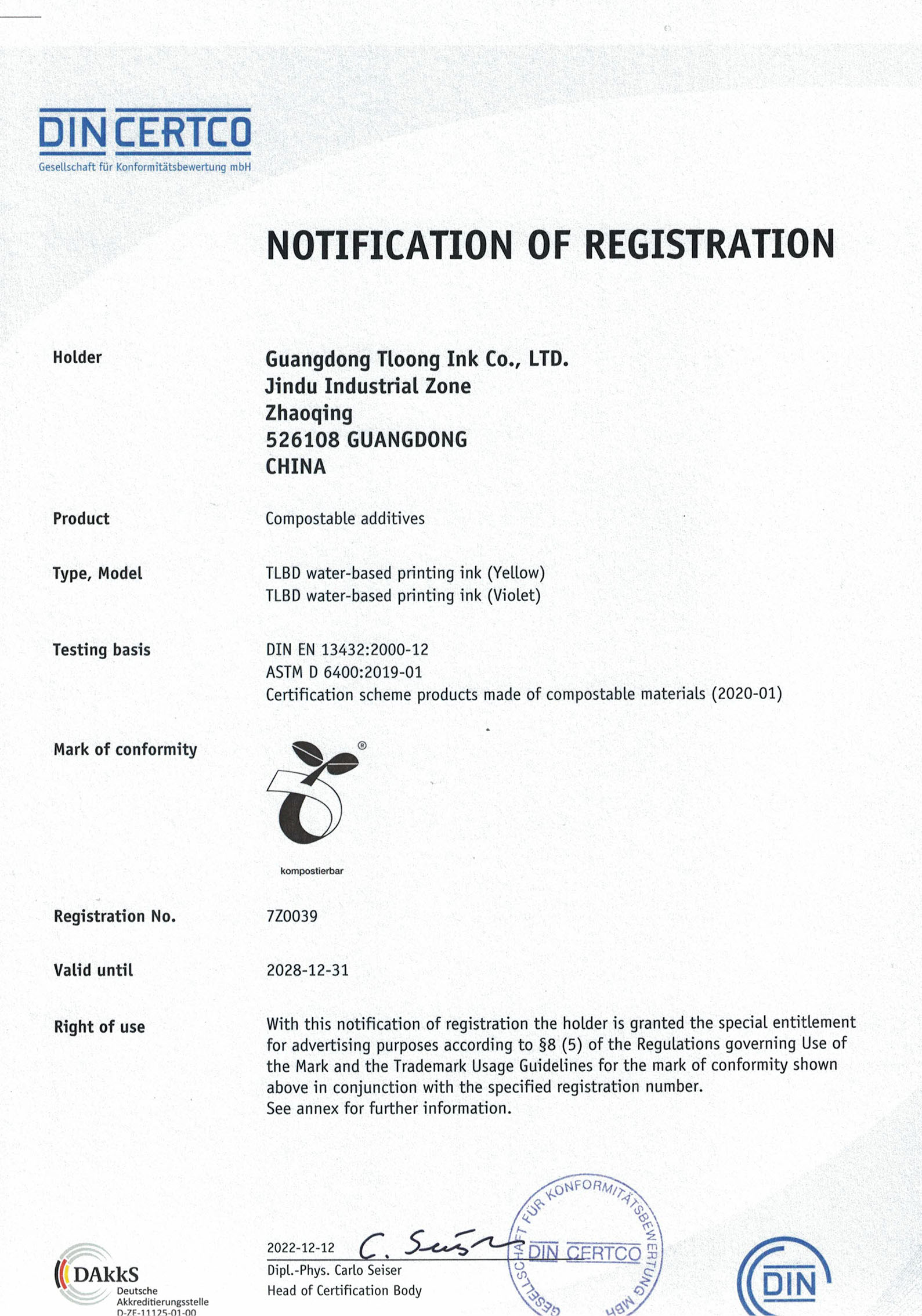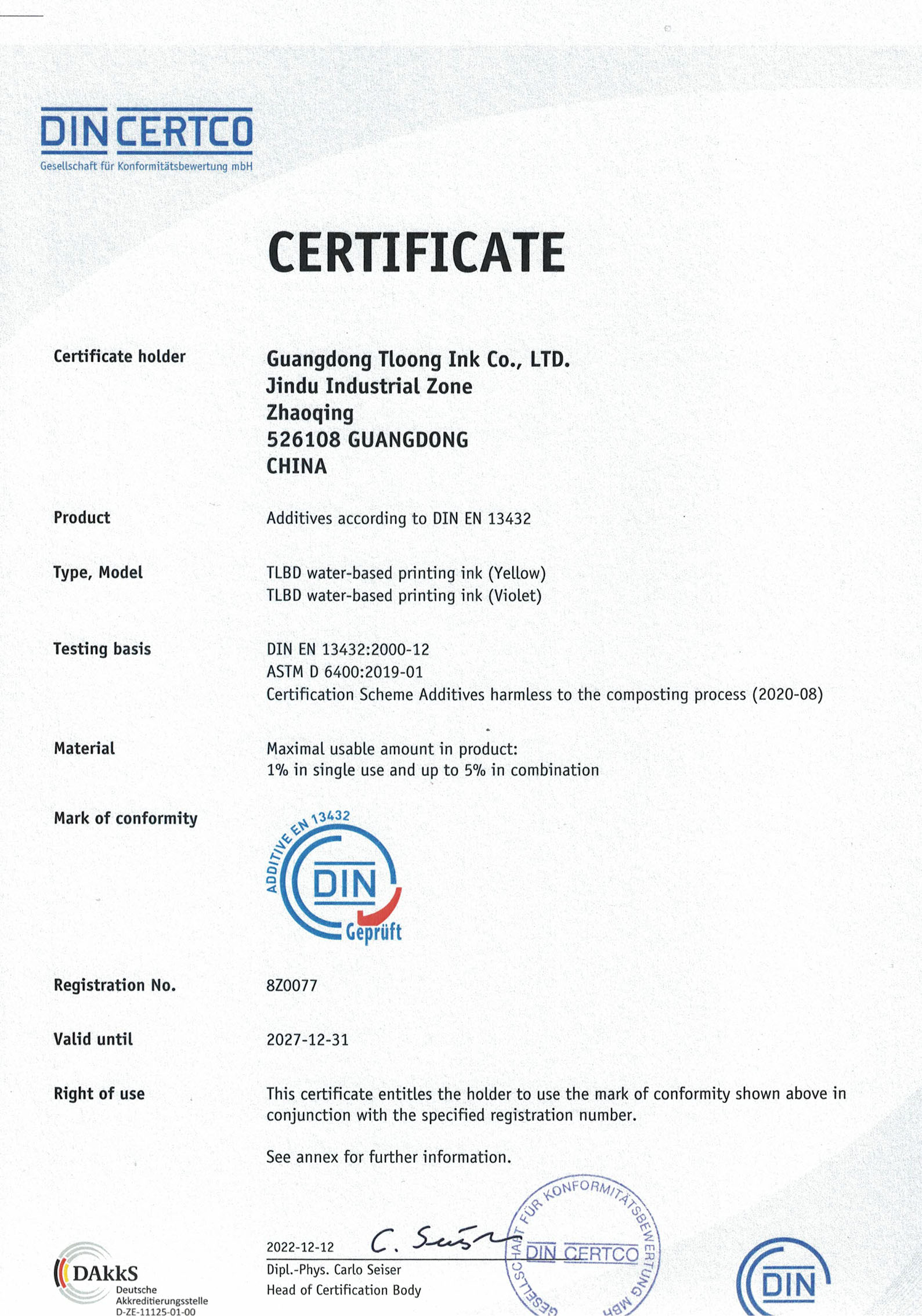 水性可降解印刷油墨的DIN認(rèn)證證書